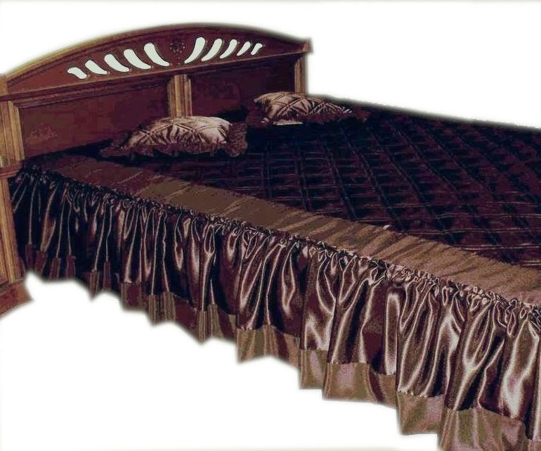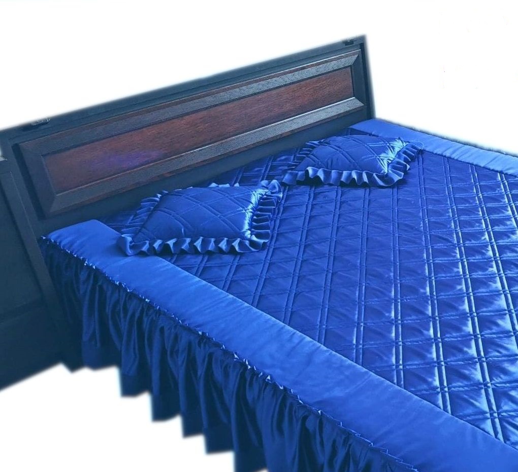 Jednokolorowa pikowana narzuta z satyno-żorżety z trzema falbanami.